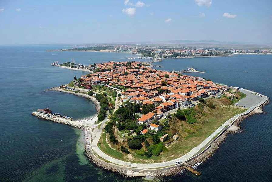 +10Несебр - болгарский город, расположенный на скалистом полуострове длиной 850 м и шириной 300 м в 37 км севернее города Бургас. Несебр делится на две части: Новый Несебр, в котором расположено большинство современных домов и отелей, курорт Солнечный берег и Старый Несебр, расположенный на маленьком полуострове, связанном с сушей узким перешейком длиной около 400 метров. Город Несебр — один из старейших городов Европы.